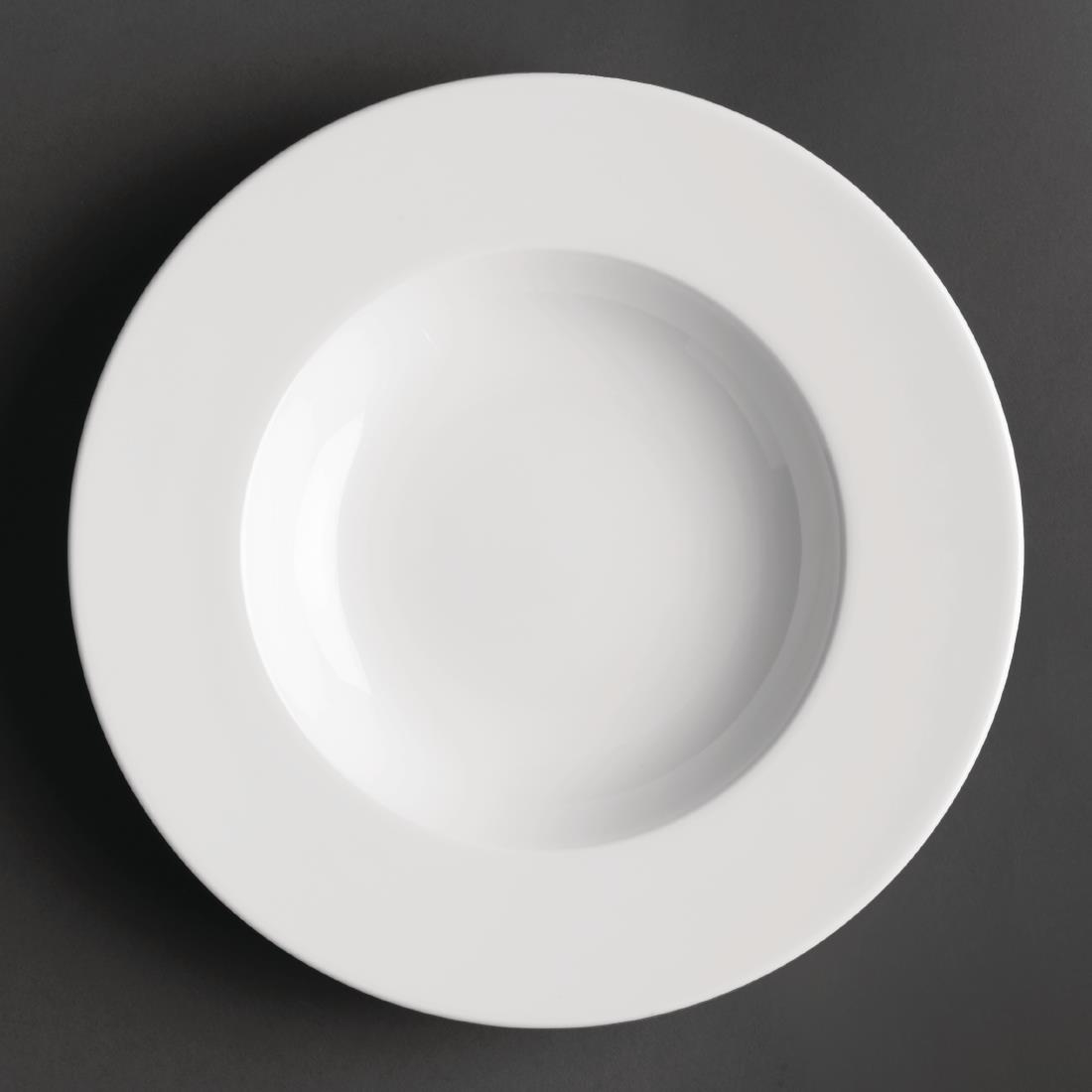 Set off your homemade soups with this stunning wide rimmed soup bowl from Royal Porcelain’ s Maxadura collection. The luxurious 25cm size is perfect for use in fine dining establishments or anywhere that takes great pride in their food presentation. The bowls can be stacked and it is safe to wash them in your commercial dishwasher.