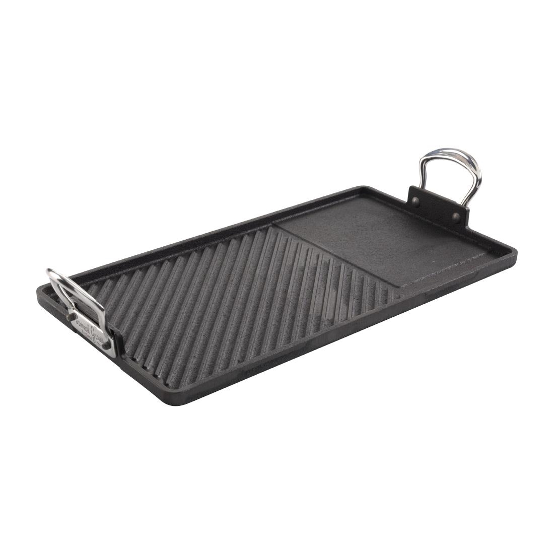 Built in Birmingham for endurance, the Samuel Groves cast iron griddle pan offers impressive performance for the busy professional kitchen. Whether you’re cooking steaks, fish, or vegetables, the heavy duty design of the griddle pan ensures impressive heat retention, delivering rapid heat-up and improved heat retention. As the griddle pan arrives fully seasoned, it is ready for immediate use straight from the box.
