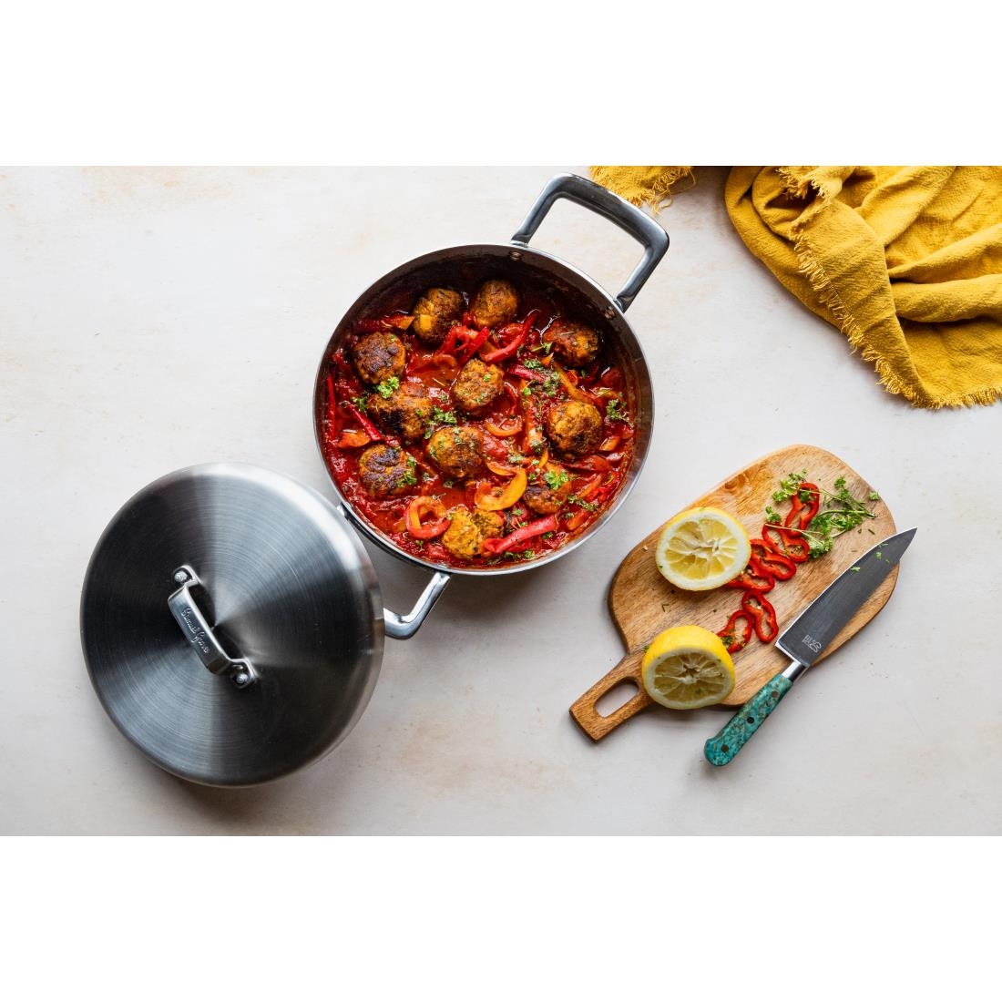 The Samuel Groves Urban 30cm pan provides exceptional cooking performance thanks to its advanced tri-ply construction. An inner core of highly conductive aluminium is sandwiched between two layers of durable, food-safe stainless steel. This design ensures rapid, even heat distribution for precise temperature control, making it a reliable choice for the busy commercial kitchen. It is suitable for use on all hobs, including induction.
