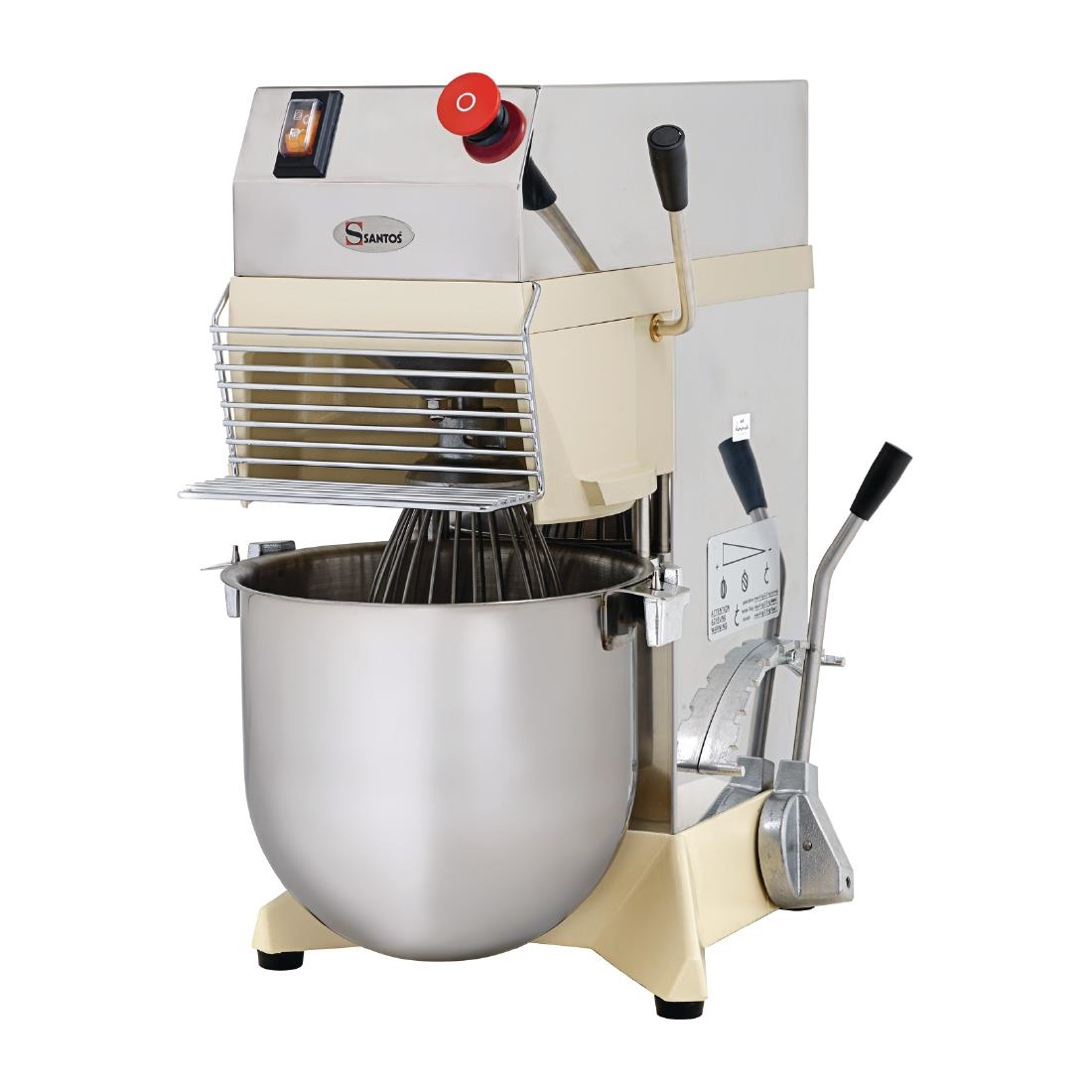 Powerful and reliable, the Santos 10 litre #27 planetary mixer is the ideal addition to any kitchen which needs reliable, consistent mixing results. The Santos is able to easily knead, beat, mix and whip all types of ingredients thanks to its 8 speed settings and three attachments which are simple to swap out. Designed for safety and durability, the Santos planetary mixer features a bowl locking system, automatic shut-off and large emergency stop button, as well as a strong stainless steel bowl and robust steel and aluminium casting. Perfect for restaurants, small bakeries, takeaways and hotels.Please note: this product is special-to-order. If returned, a 15% restocking fee will apply.