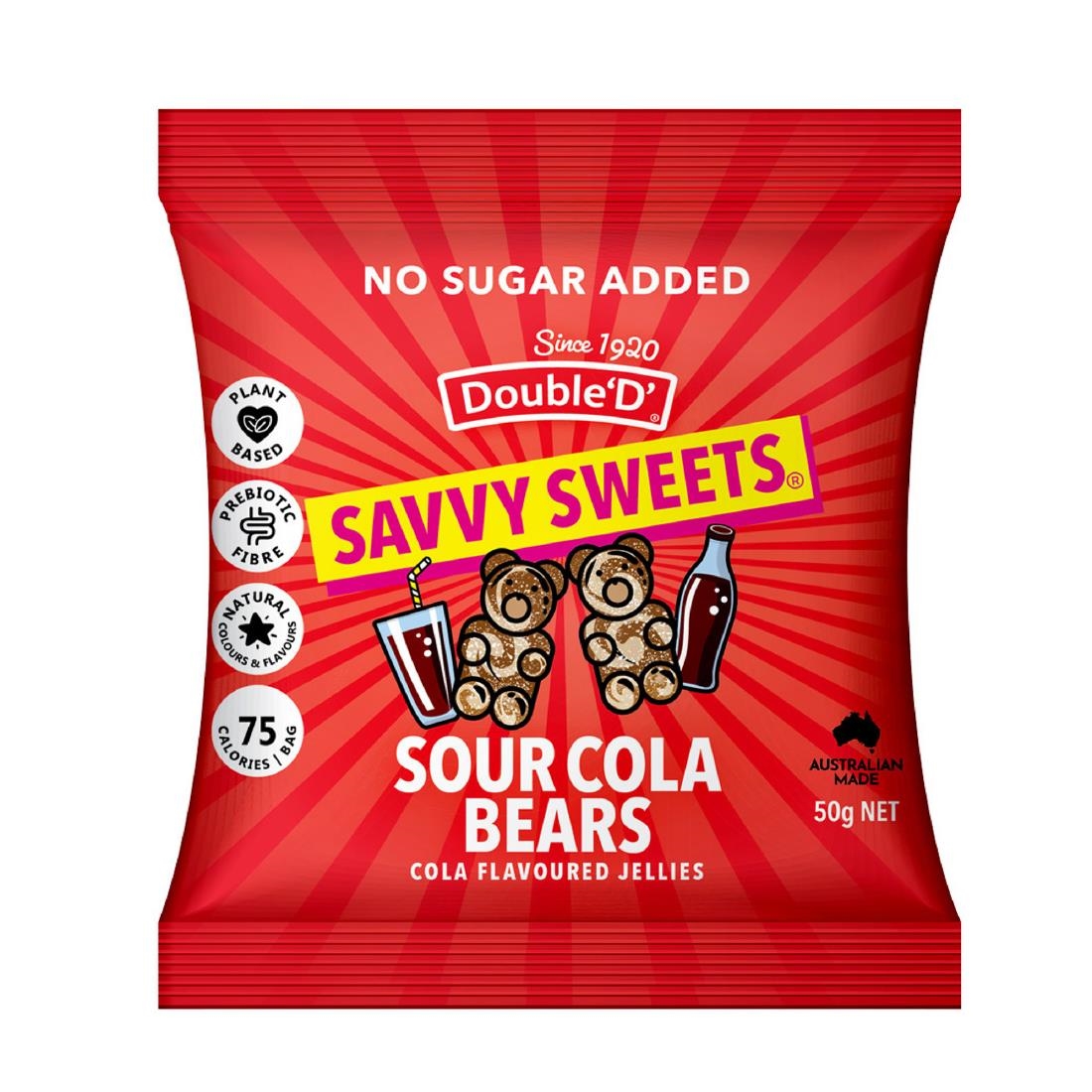 Savvy Sweets Sour Cola Gummy Bears offer a bold, zesty cola flavour with a sour twist that’s sure to satisfy your sweet cravings. These cola-flavoured jellies are not only delicious but also packed with high fibre and are low in sugar, containing just 3g per serving. Made from vegan and plant-based ingredients, they contain only 75 calories per bag.