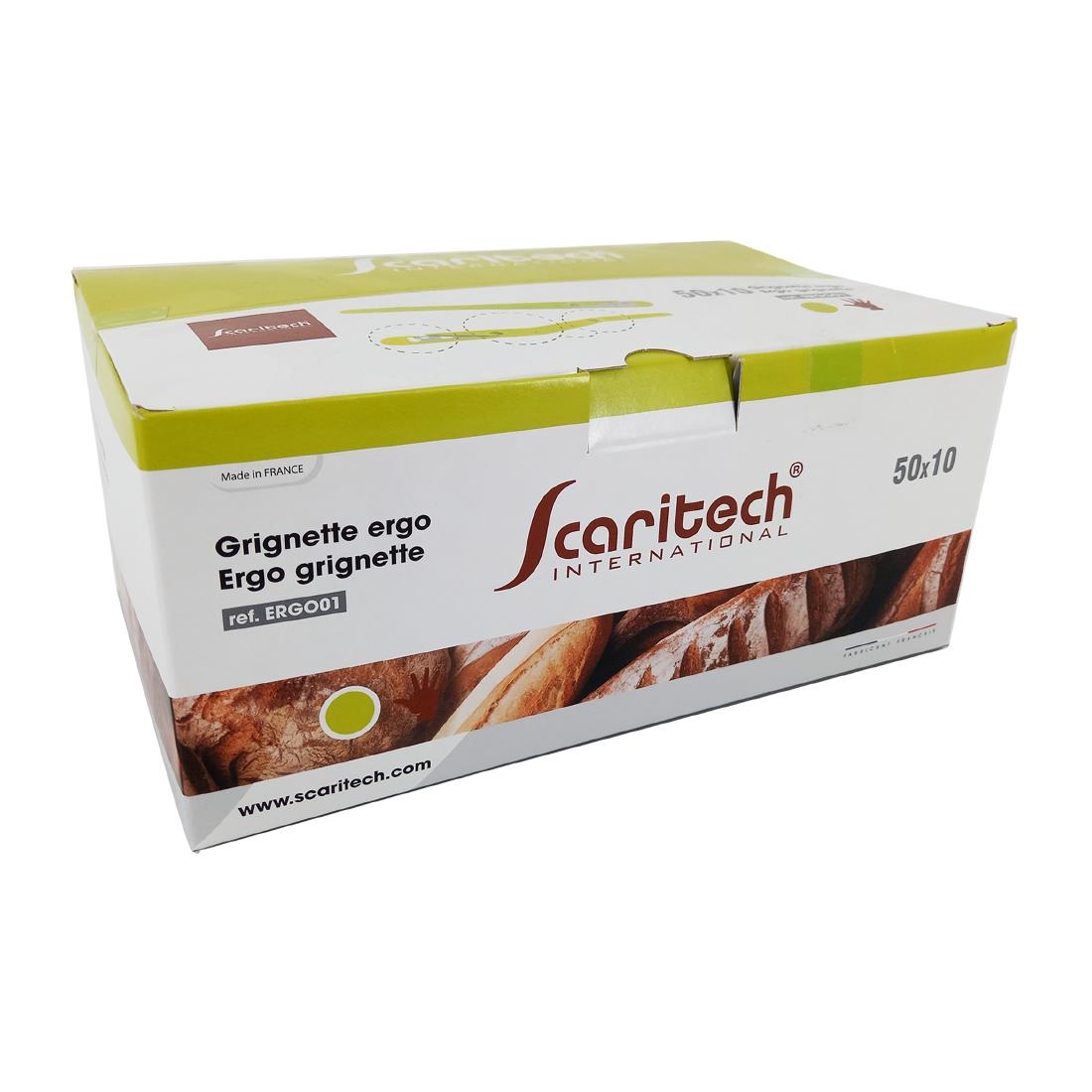 The Scaritech Ergo green grignette scoring blade is the new and improved version of the original green grignette baker’s blade. It’s an essential tool for professional bakers, designed to enhance the precision and efficiency of scoring dough, providing the perfect grigne.