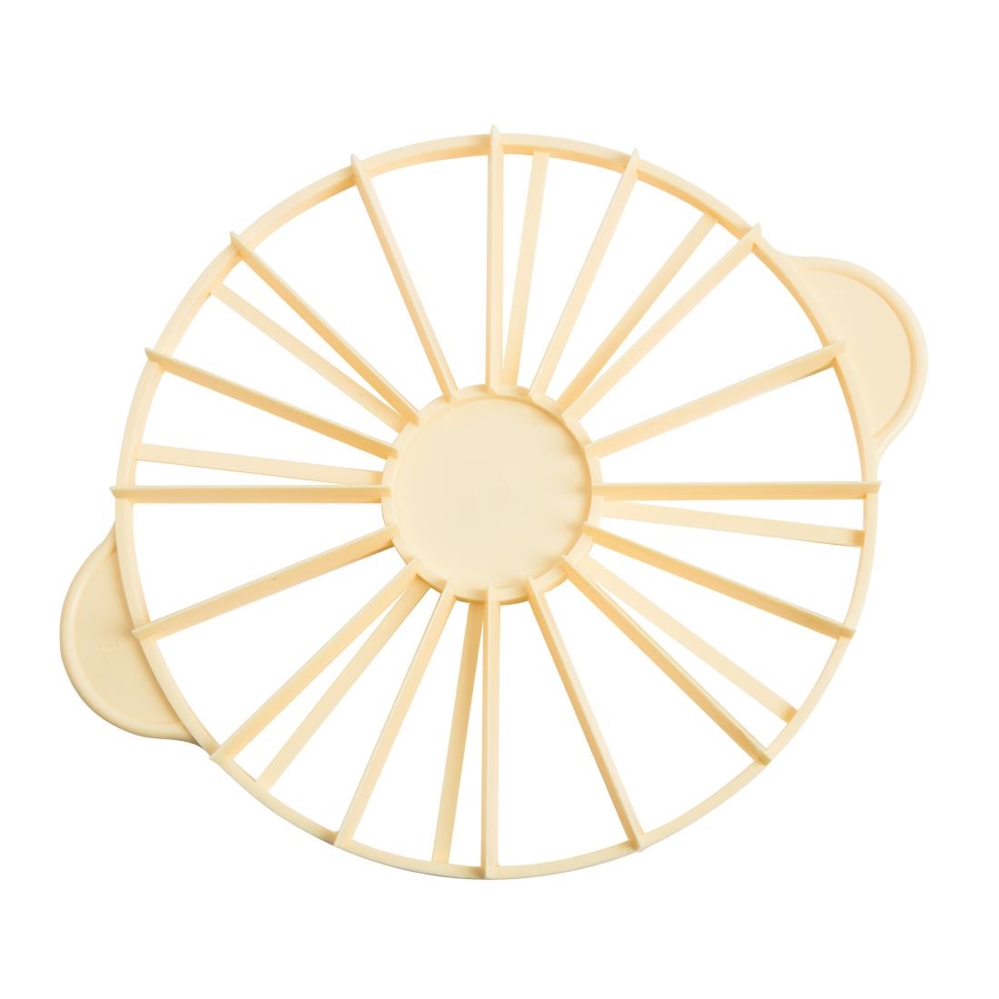This 12 or 16 piece tart and cake divider makes it quick and easy for you to evenly divide up cakes. Two handles make it comfortable and easy to use, helping you to effortlessly create even slices. A tough polypropylene construction makes it durable and easy to clean, ideal for use in professional kitchens.