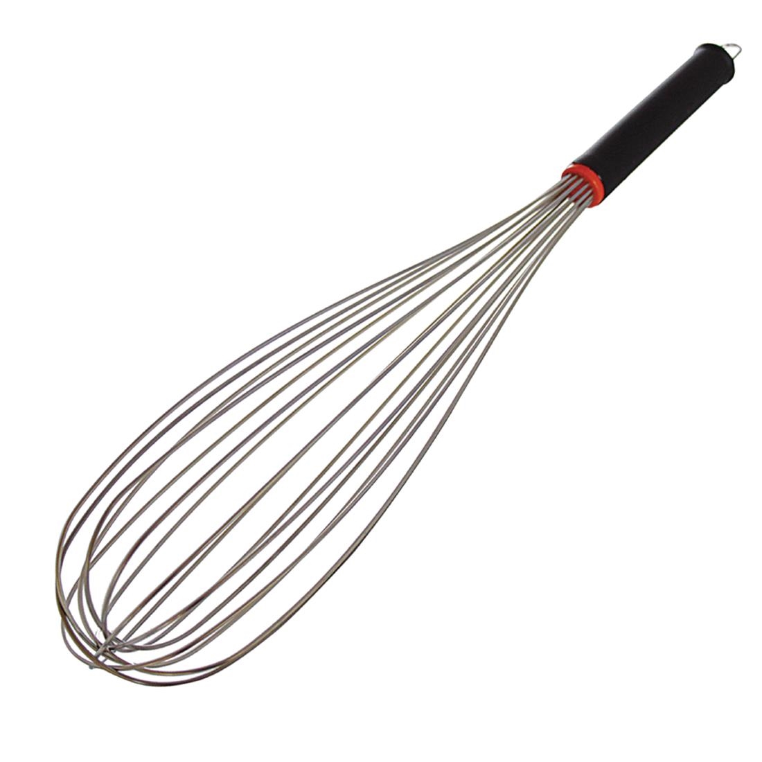 Effortlessly beat and whip eggs, meringues and cream with the premium Schneider 450mm 16 wire whisk. Measuring 2mm thick and constructed from high quality stainless steel, the 16 wires power through any mixture with ease, helping to speed up your preparation times. The fixed handle offers a more comfortable and secure grip to help you whisk large quantities of ingredients quickly and easily. The thermoplastic handle is also heat resistant up to 220°C (428°F), giving you a cool touch when working at intense heats. A hook on the end of the handle also allows it to be hung up for more practical storage.