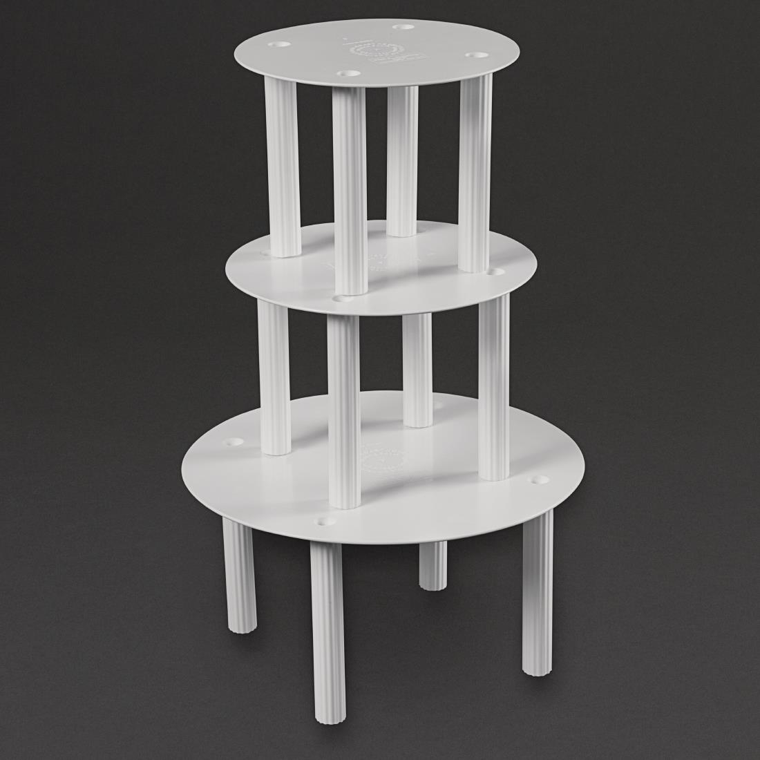 This three-tiered cake stand from Schneider benefits from a simple polypropylene construction, making it highly durable and easy to as each of the discs can be pushed into place, using a plug-in system. The white dishwasher-proof cake stand is suitable for single or multiple use, making it a versatile item for your cake presentation.
