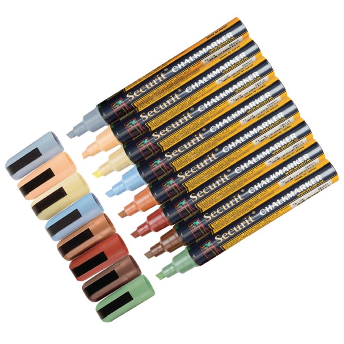 Liquid chalk markers are a clean, weather resistant alternative to traditional chalk. This pack of eight chisel tipped markers come in a variety of colours, including brown, light brown, red, light blue, light yellow, light green, grey and salmon pink. They are easy to clean with liquid chalk cleaner, create no dust or mess and will write on almost anything solid.