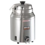 The Server FS model topping warmer is a high quality bain-marie style water bath warmer with wrap around heating element, ideal for keeping delicious toppings melted and at a safe and hygienic temperature. Perfect for fairground or cinema style foods, the server keeps toppings such as fudge/chocolate sauce, gravy, nacho cheese and caramel at accurate and ready to serve temperatures. The server is made from polished stainless steel and would be suitable for front of house use due to its attractive design and simple, easy to use ladle. The built in temperature sensor ensures that the contents don’t go to waste by being over or under heated.