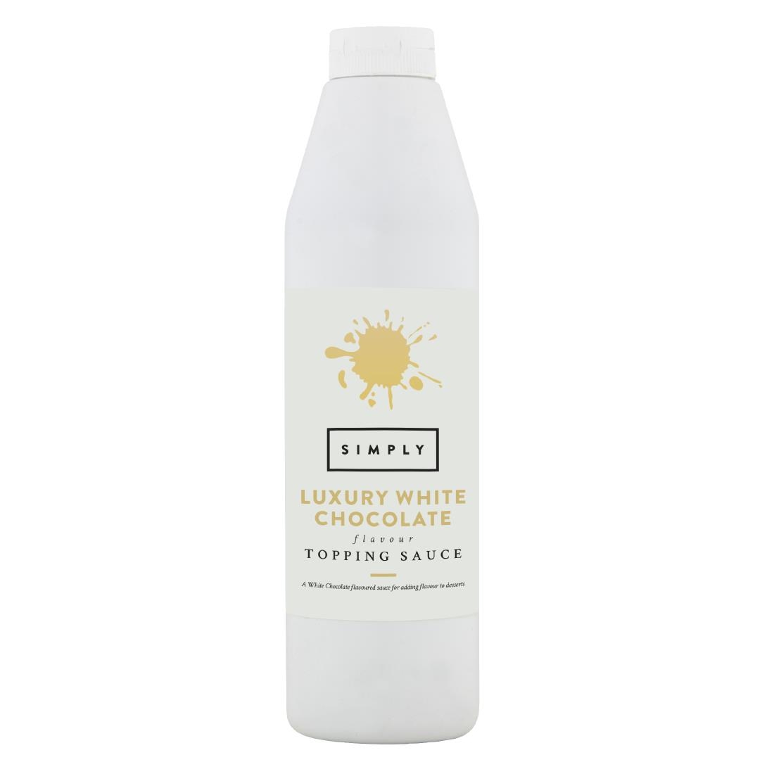 Velvety smooth and sweet, Simply’s luxury white chocolate topping sauce is the perfect addition to many desserts. Packaged in a large 1kg squeezy bottle, this beloved flavour will remind you of your childhood through the delicious sweetness. Rich and luxurious, you’ll love this sauce drizzled over everything. Simply luxury white chocolate topping sauce is gluten-free and carries the Vegetarian Society Vegan certification.