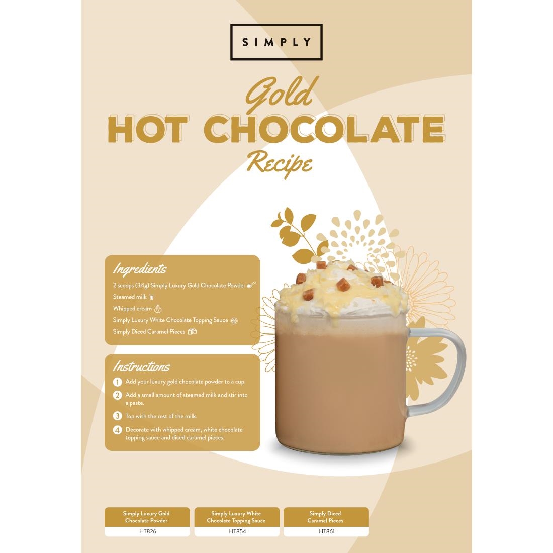 This topping sauce works great in many recipes! Need a quick idea? Why not add it to an indulgent gold hot chocolate. Check out our recipe card in the useful documents section for more information.
