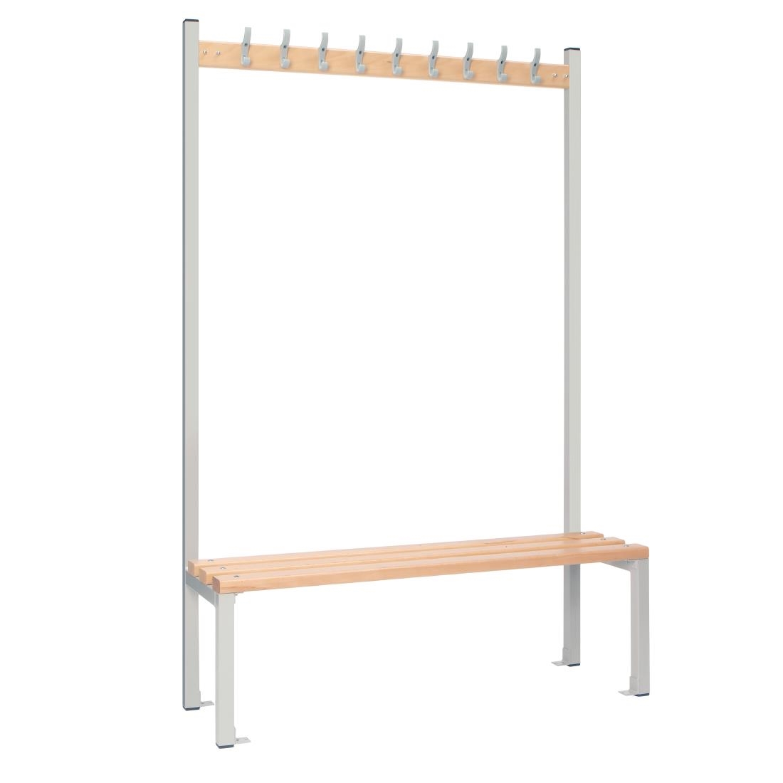 This single-sided seating island is an ideal choice for various settings such as schools, gyms and staff changing rooms. Constructed with durability in mind, its robust steel framework is powder-coated in an attractive grey shade, ensuring both strength and a visually appealing design. The slatted seat, crafted from hardwearing beech wood, offers comfort and support, making it the perfect furniture piece for any changing space.