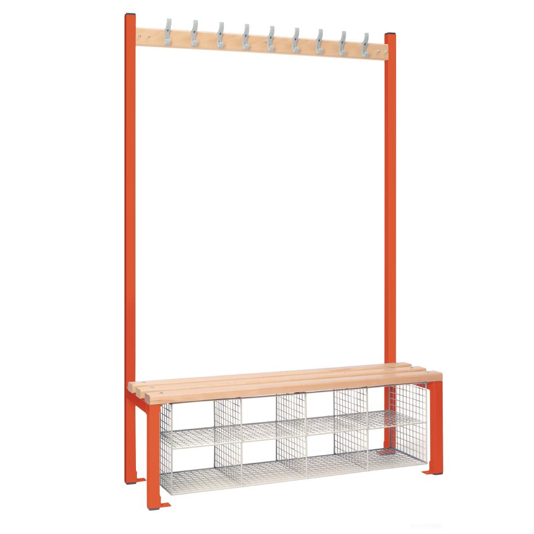This single-sided seating island is an ideal choice for various settings such as schools, gyms and staff changing rooms. Constructed with durability in mind, its robust steel framework is powder-coated in a bright red shade, ensuring both strength and a visually appealing design. The slatted seat, crafted from hardwearing beech wood, offers comfort and support, making it the perfect furniture piece for any changing space.