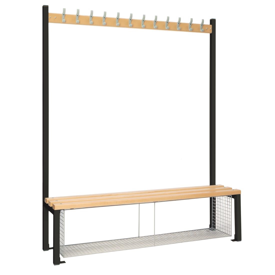 This single-sided seating island is an ideal choice for various settings such as schools, gyms and staff changing rooms. Constructed with durability in mind, its robust steel framework is powder-coated in a sleek black shade, ensuring both strength and a visually appealing design. The slatted seat, crafted from hardwearing beech wood, offers comfort and support, making it the perfect furniture piece for any changing space.