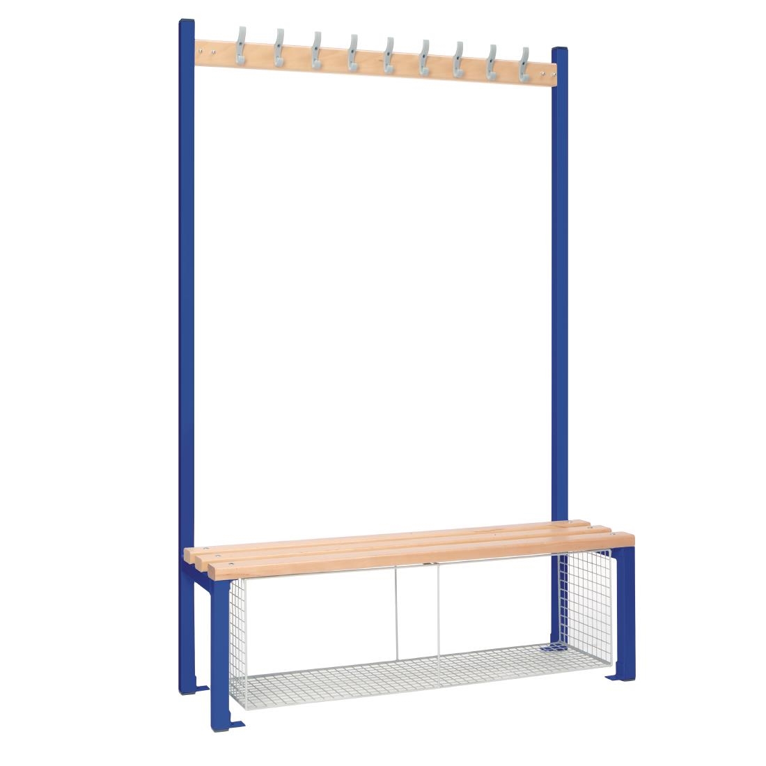 This single-sided seating island is an ideal choice for various settings such as schools, gyms and staff changing rooms. Constructed with durability in mind, its robust steel framework is powder-coated in an attractive blue shade, ensuring both strength and a visually appealing design. The slatted seat, crafted from hardwearing beech wood, offers comfort and support, making it the perfect furniture piece for any changing space.