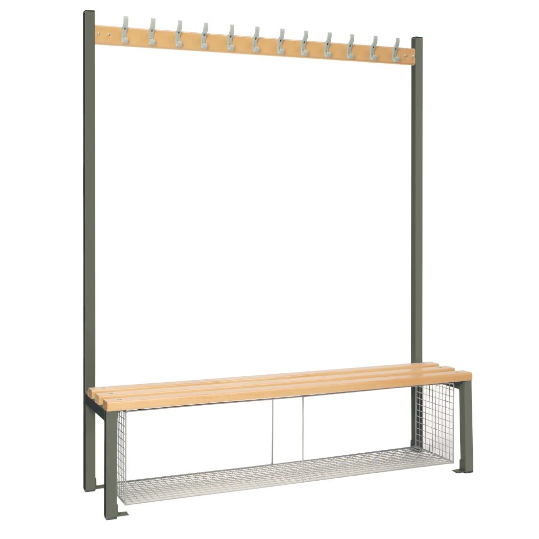 This single-sided seating island is an ideal choice for various settings such as schools, gyms and staff changing rooms. Constructed with durability in mind, its robust steel framework is powder-coated in an attractive dark grey shade, ensuring both strength and a visually appealing design. The slatted seat, crafted from hardwearing beech wood, offers comfort and support, making it the perfect furniture piece for any changing space.