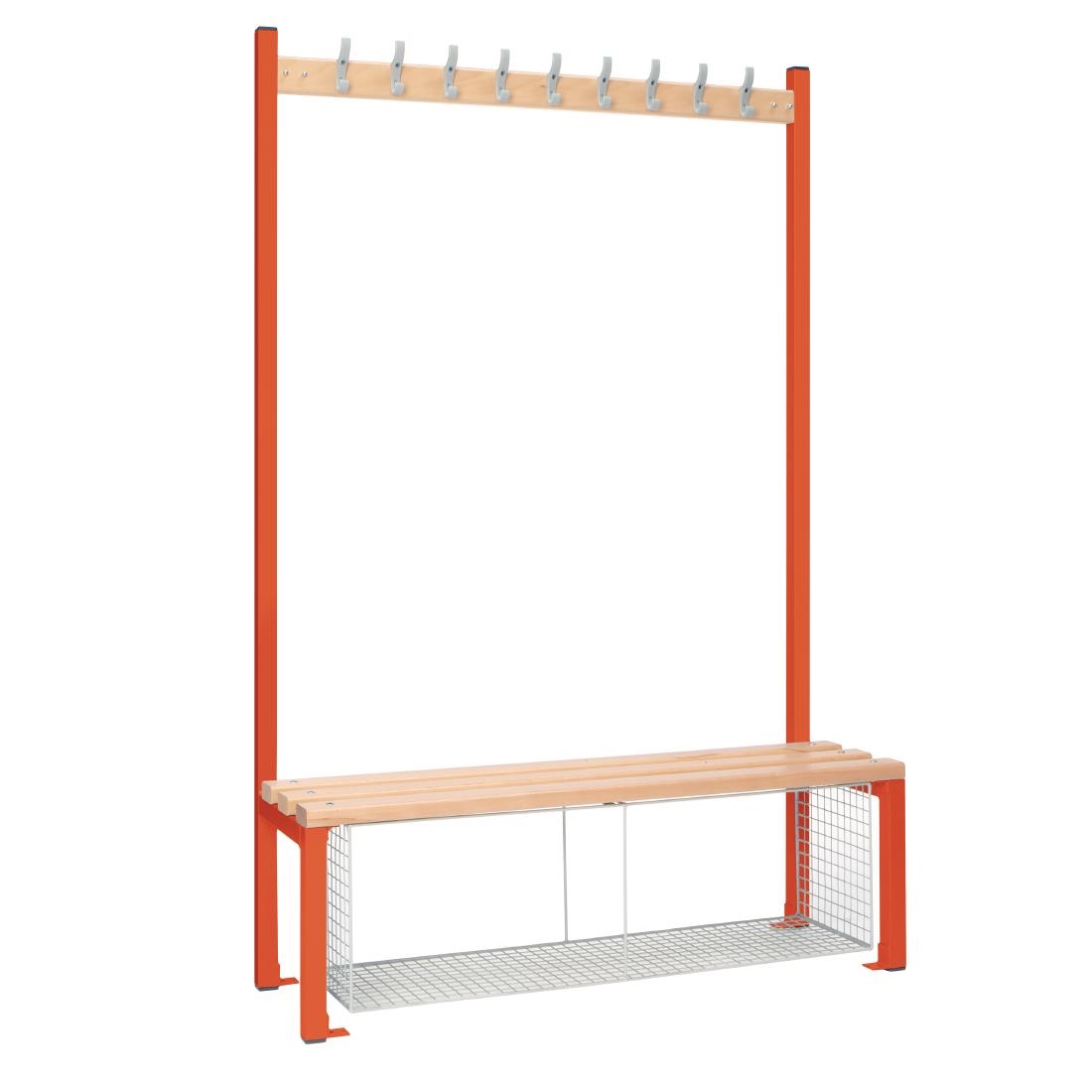 This single-sided seating island is an ideal choice for various settings such as schools, gyms and staff changing rooms. Constructed with durability in mind, its robust steel framework is powder-coated in a bright red shade, ensuring both strength and a visually appealing design. The slatted seat, crafted from hardwearing beech wood, offers comfort and support, making it the perfect furniture piece for any changing space.
