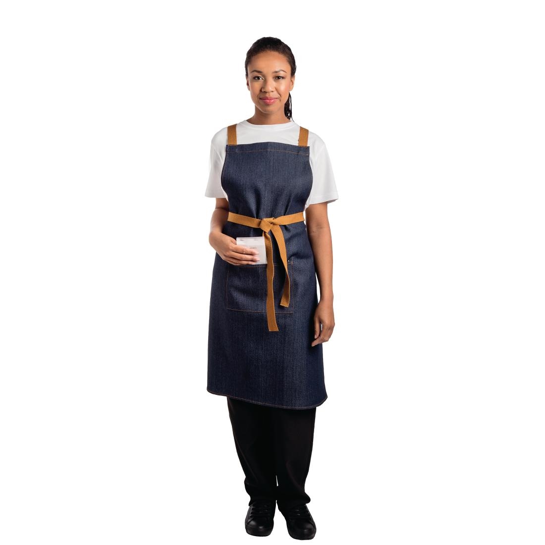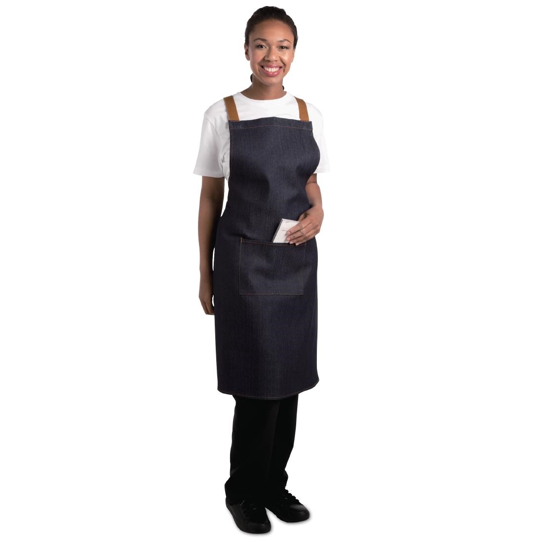 Add something a little extra to your uniform with this x-cross back bib apron from Southside. The unique design not only looks stylish but also provides extra comfort and security with the over the shoulder ties. This will ensure the weight of the apron is evenly distributed over the body and does not interfere with work. The full length apron provides full protection for clothing and uniform without hindering movement. As a handy extra, the double front pockets offer essential storage for your most-accessed equipment, such as pens, order pads or small PDAs.