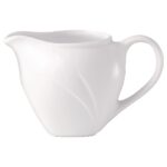 With flowing curves and a subtle embossment, the Alvo crockery range assures outstanding food presentation to complement any cuisine. This 284ml Empire jug combines the pure white delicacy and translucence of finest china with exceptional durability, with features including thermal shock and stain resistance and a robust glaze.