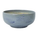 New Revolution Aurora Bluestone Bowl 13.5cm (5 1/4″) 45.5cl, 16oz. Aurora uses reactive glazes in combination to achieve stunning colour and contrast effects. Aurora is backwards compatible with both Revolution and Vesuvius ranges to further extend a creative and versatile presentation. Whether it¿s main course, sides or dessert, the Aurora collection provides the perfect solution for all types of cuisine.