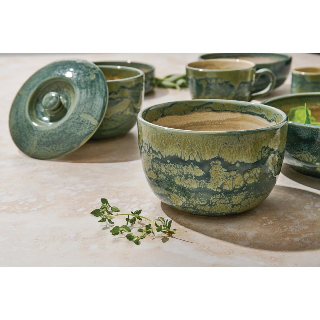 New Revolution Aurora Jade Bowl 12cm (4 2/3″) 56.75cl, 20oz. Aurora uses reactive glazes in combination to achieve stunning colour and contrast effects. Aurora is backwards compatible with both Revolution and Vesuvius ranges to further extend a creative and versatile presentation. Whether it¿s main course, sides or dessert, the Aurora collection provides the perfect solution for all types of cuisine.