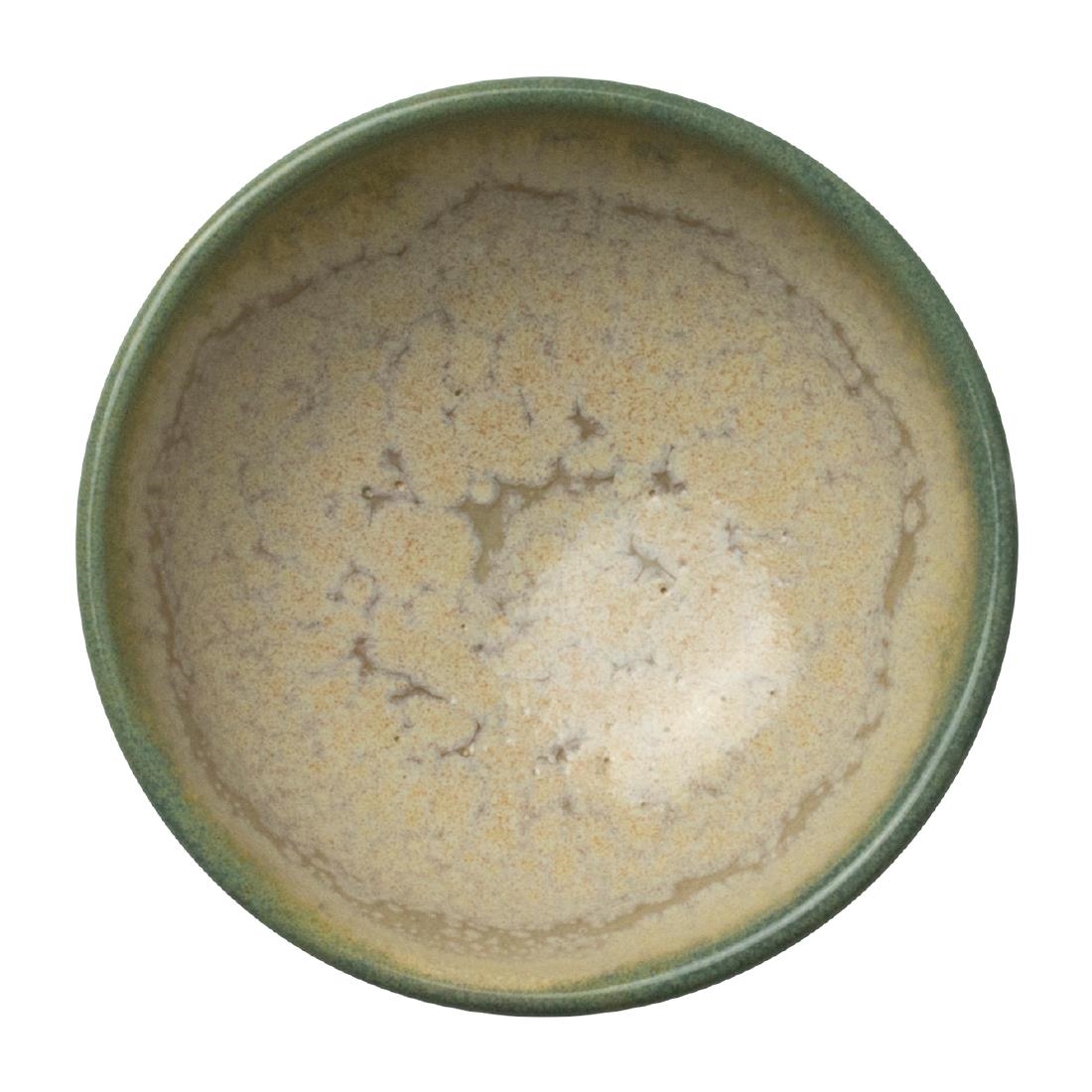 New Revolution Aurora Jade Tulip Bowl 7cm (2 3/4″) 5.68cl, 2oz. Aurora uses reactive glazes in combination to achieve stunning colour and contrast effects. Aurora is backwards compatible with both Revolution and Vesuvius ranges to further extend a creative and versatile presentation. Whether it¿s main course, sides or dessert, the Aurora collection provides the perfect solution for all types of cuisine.