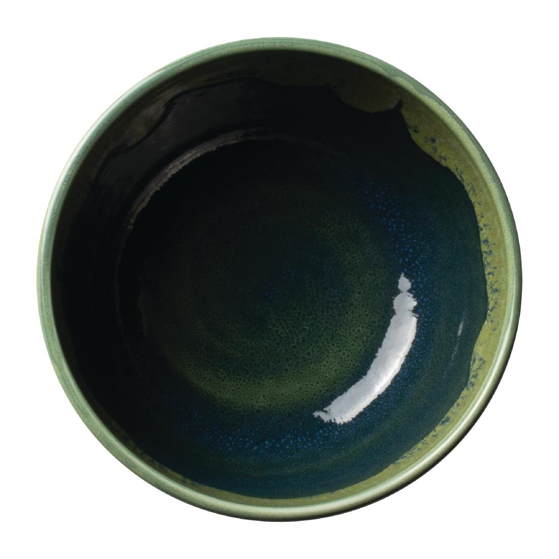 New Vesuvius Aurora Burnt Emerald Bowl 11.5cm (4 1/2″) 45.5cl, 16oz. Aurora uses reactive glazes in combination to achieve stunning colour and contrast effects. Aurora is backwards compatible with both Revolution and Vesuvius ranges to further extend a creative and versatile presentation. Whether it¿s main course, sides or dessert, the Aurora collection provides the perfect solution for all types of cuisine.