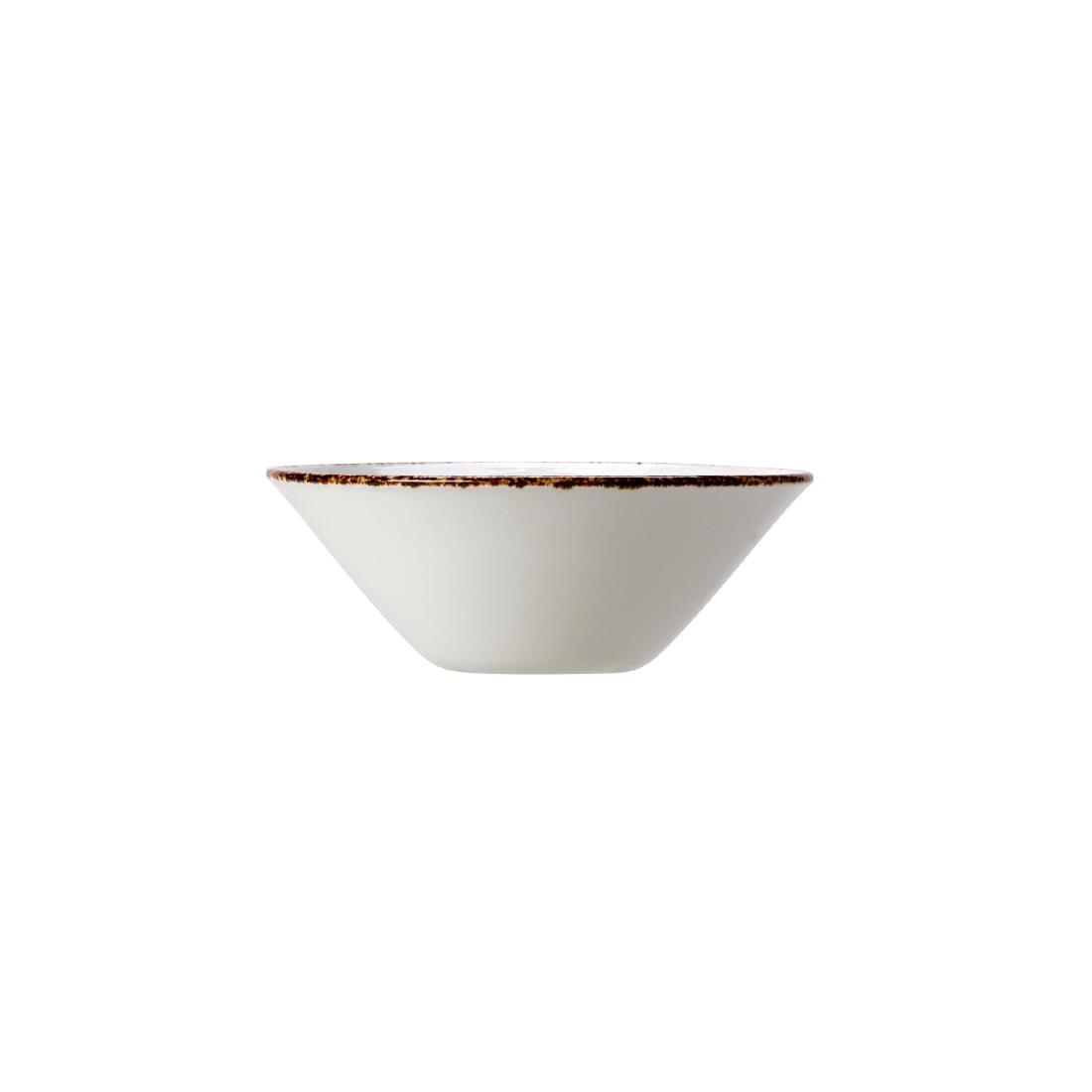 With a delicately toned brown rim and classically straight sided design, these small bowls are perfect for appetisers, starters and small desserts or for serving dips such as hummus or guacamole. Part of the extensive Steelite Brown Dapple range, these bowls are made of alumina vitrified ceramic for a tough and hardwearing finish and are microwave and dishwasher safe.