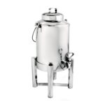 Crafted from 18/10 stainless steel, this Steelite Tempo insulated milk dispenser with ice sleeve keeps milk at refrigerator temperatures for over 5 hours