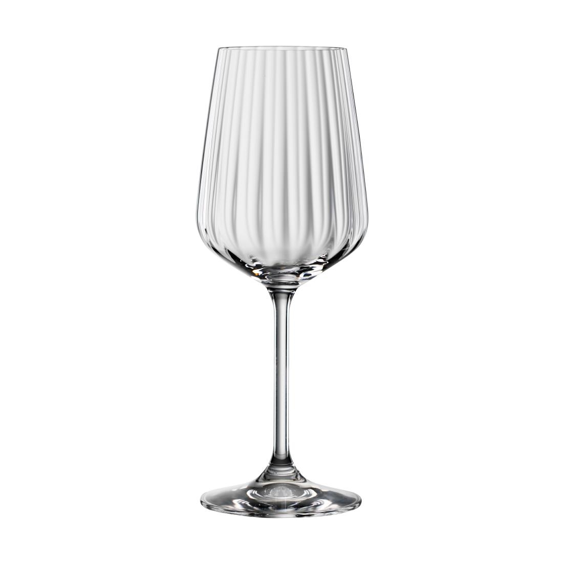 Spiegelau’s Lifestyle white wine glass is at home wherever lifestyle and fashion meet. Their modern diamond shape is emphasized once again by the linear decoration.