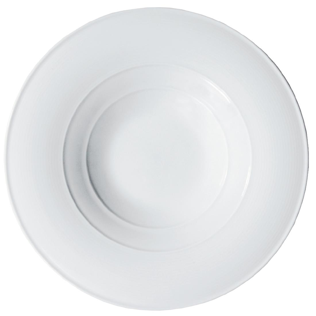 This porcelain 12 â…˜” broad rimmed pasta plate from the Aura collection creates a superb setting for fine dining, adding a stylish emphasis to every dish. With a White finish and durable reflective glaze, Aura has been developed to meet the demands of modern food presentation combining contemporary design with classic, practical features. Need advice on choosing the right size? See the size guide below for more information.