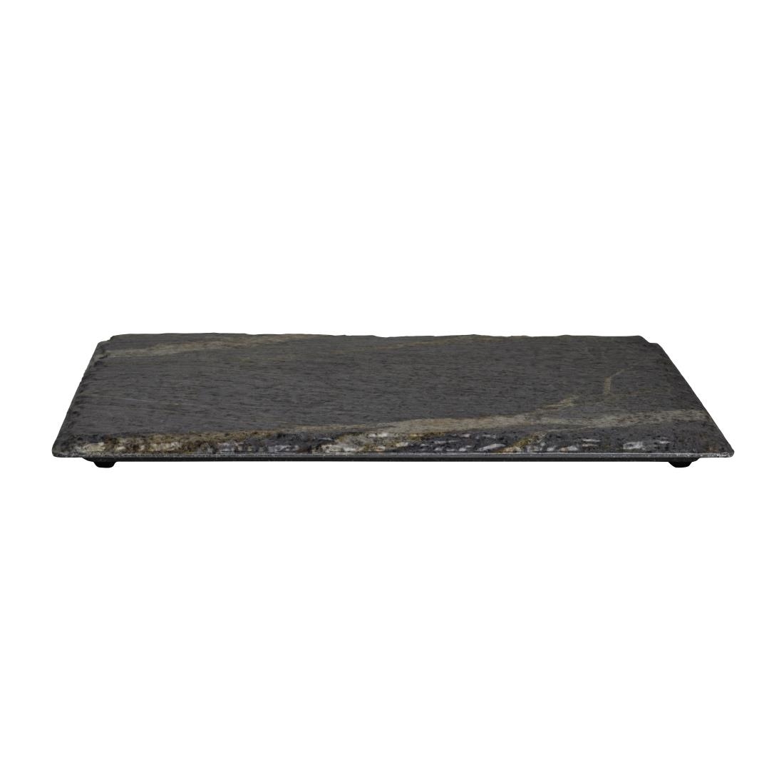 Give your food presentation a beautiful rustic touch with these GN 1/2 rectangular trays from the Quarry collection by Steelite Creations Melamine. They feature a unique, stone-like decal on a highly durable melamine body and are ideally sized to meet the needs of any buffet presentation.