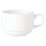 This small espresso cup combines excellent presentation with practicality and modest proportions. The Simplicity White collection is ideal for any casual dining occasion from hotel breakfast, through café lunch to pub dinner. These petite 100ml stacking espresso cups complement all types of menu and food presentation, providing a versatile and simple backdrop. The cup is made from a strong and highly durable ceramic body, making it easily able to withstand the trials of daily use, is microwave, dishwasher and freezer proof, and has great heat retention for efficient service of small coffees.