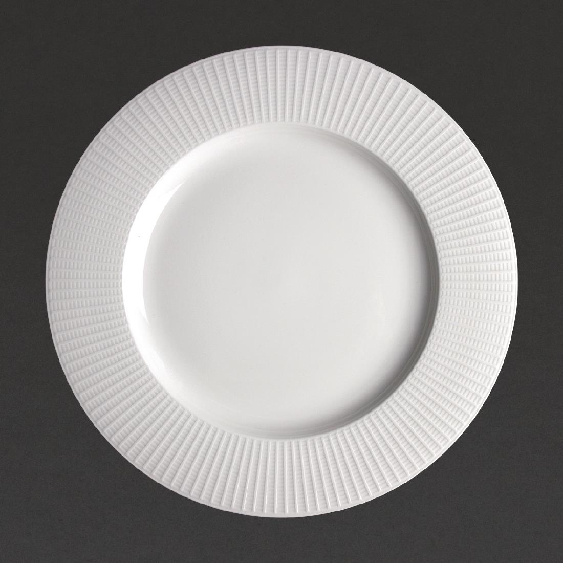 Serve generous main courses with style thanks to the subtle grid design of these dining plates’ lips. Perfect for adding texture to any course without distracting from the food, the intricate woven detailing of the edge of these plates is made using traditional techniques for a contemporary yet intriguing finish. These plates are resistant to thermal shocks, stains and are designed to withstand extensive commercial usage. Dishwasher, freezer, oven and microwave safe, these stylish plates suit a range of hotel and restaurant settings.