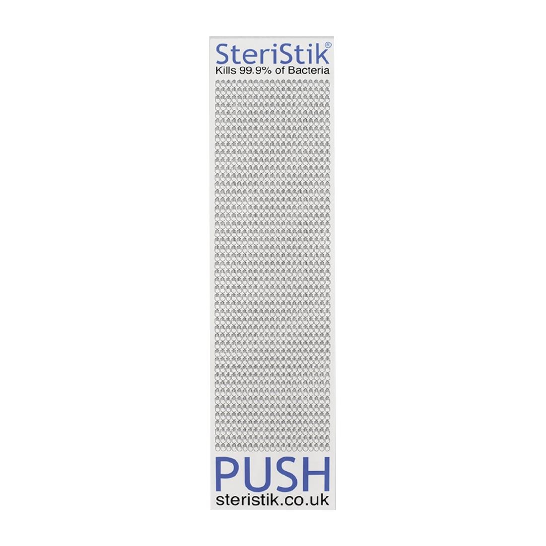 Take steps towards excellent hygiene, with this pack of 10 antibacterial door pushes from SteriStik. With an intelligent, antibacterial coating, these covers are designed to reduce the amount of harmful bacteria that spreads throughout your business.