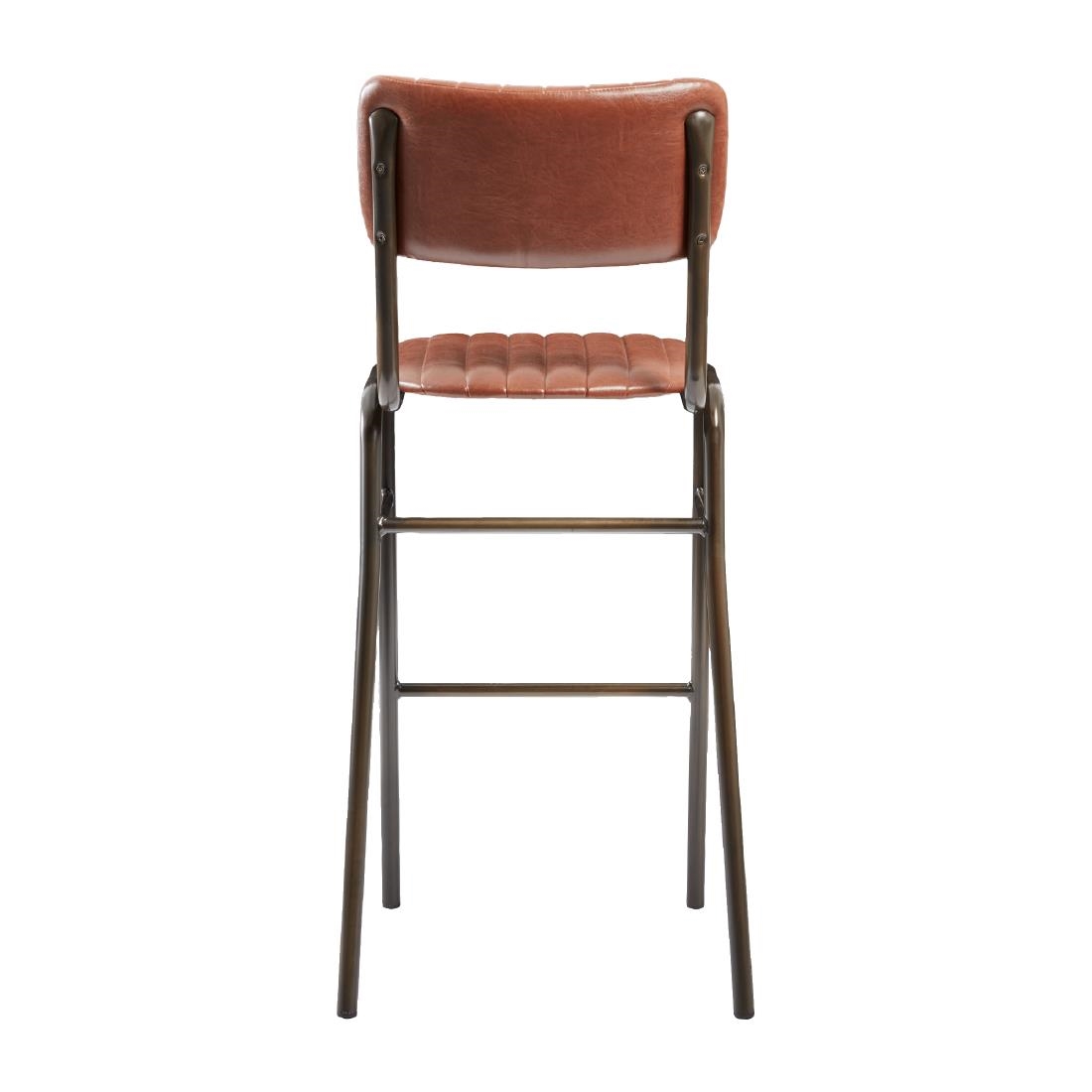 Give your bar, restaurant or coffee shop a chic, industrial look with this Tavo stacking bar stool. Standing at a height of 1100mm, the seat and back pad of the stool are wrapped in premium vintage faux leather, featuring a distinctive ribbed pattern that seamlessly blends style and comfort. This contrasts beautifully with the extremely strong tubular clear lacquered metal frame. For easy storage, the bar stool can be stacked six to eight chairs high (user’s discretion) depending on the height and stability in the chosen storage area.