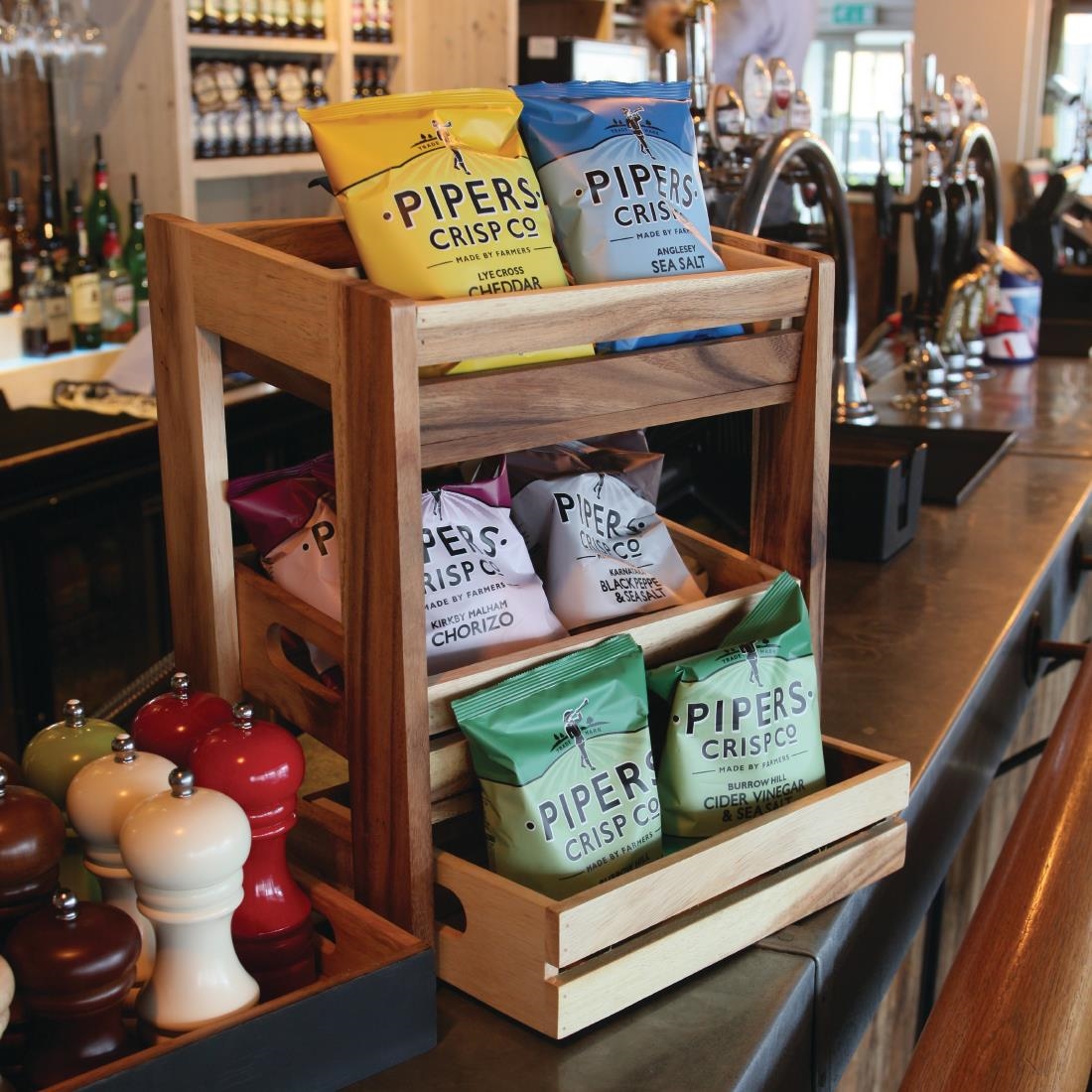 Ensure you show off your freshest fruit and vegetables in style by presenting them in this stylish wooden crate from T&G. The acacia wood brings a rustic charm to any food display, providing a natural backdrop that makes the bright and vibrant colours of your fresh produce truly stand out.The natural grain of the wood means no two crates are the same, making every display unique. The ‘Fruit & Vegetables’ text on the front adds another classic touch, but it’s only printed on one side – you can just turn the crate around if you prefer to display a blank side.Want to improve your display to make it even more eye-catching? No problem – the crate can be used with both the two-tier display rack (CL484) and the riser (GL068), helping you to create an appealing raised or angled presentation guaranteed to increase those impulse purchases.