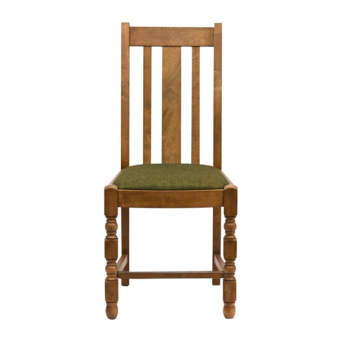 Crafted from rubberwood with a muted weathered oak finish, this set of six Thame dining chairs is upholstered in a soft Shetland Forest green textured fabric. Each chair conforms to CRIB 5 FR, ensuring it is suitable for hospitality use.