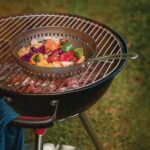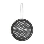 This barbeque wok offers an alternative option for cooking outdoors on the grill, as we all look for something a bit different to conjure up al fresco food.Made from anodised aluminium with a stainless steel handle, it is scratch resistant as well as being resistant to high temperatures and conducts heat quickly and evenly.A flatter base than a conventional wok means a bigger area is in contact with the hot grill, but it still has sloping sides to stir and toss the food quickly and easily. The small holes in the wok allow the contents to char over coals and the smoke to pass through for a smoky flavour. It also means that if you are cooking a variety of food types together there is not the same build up of mixed juices and fats in the wok. This allows you to replicate authentic wok cooking, which is always done at high heat, on the grill, creating a combo of authentic stir fries with a barbeque sizzle, smell, and taste, making your food as diverse as it is delicious.It is fantastic for juicy tiger prawns, tender fish pieces, chunks of meat and poultry, vegetables, and many other smaller foods.