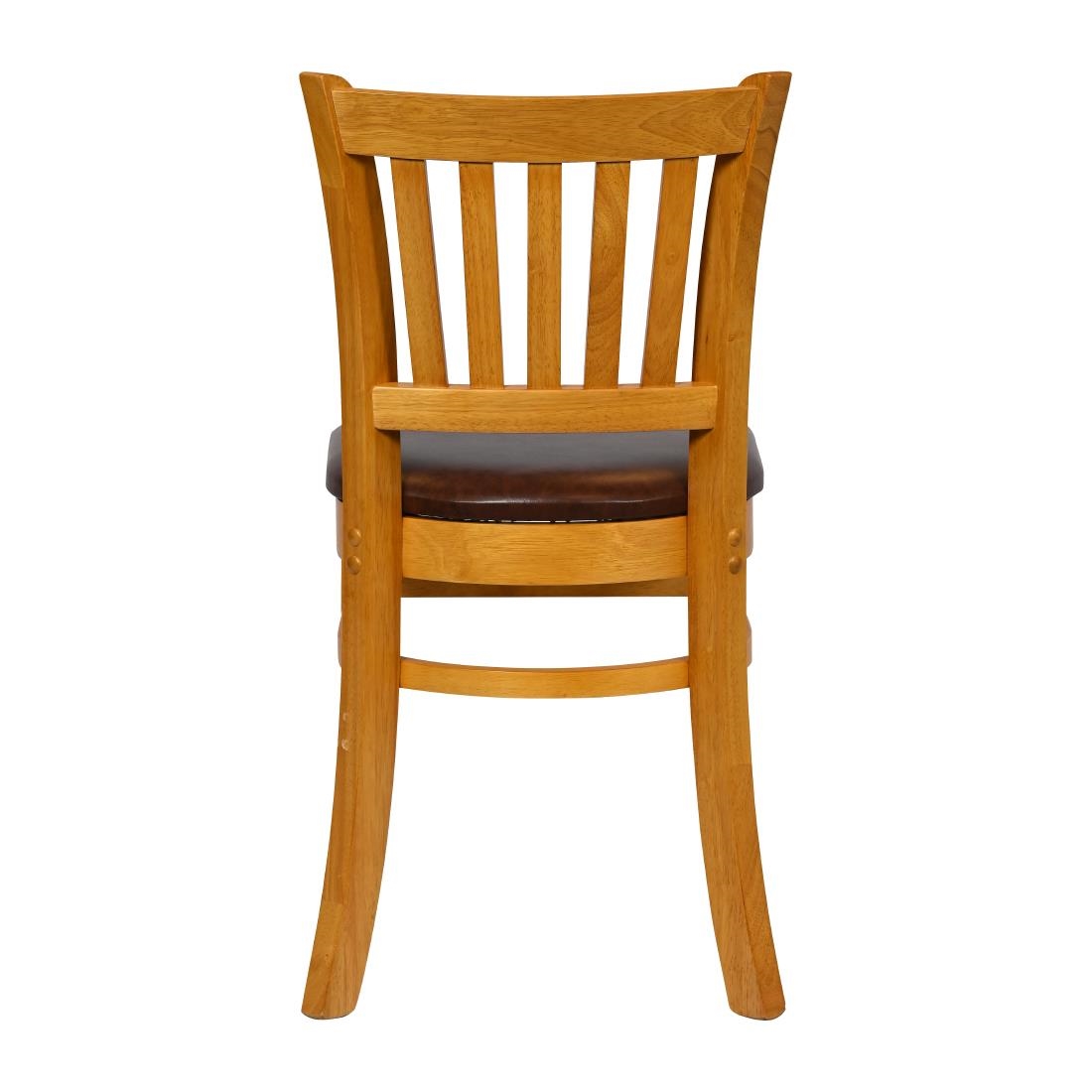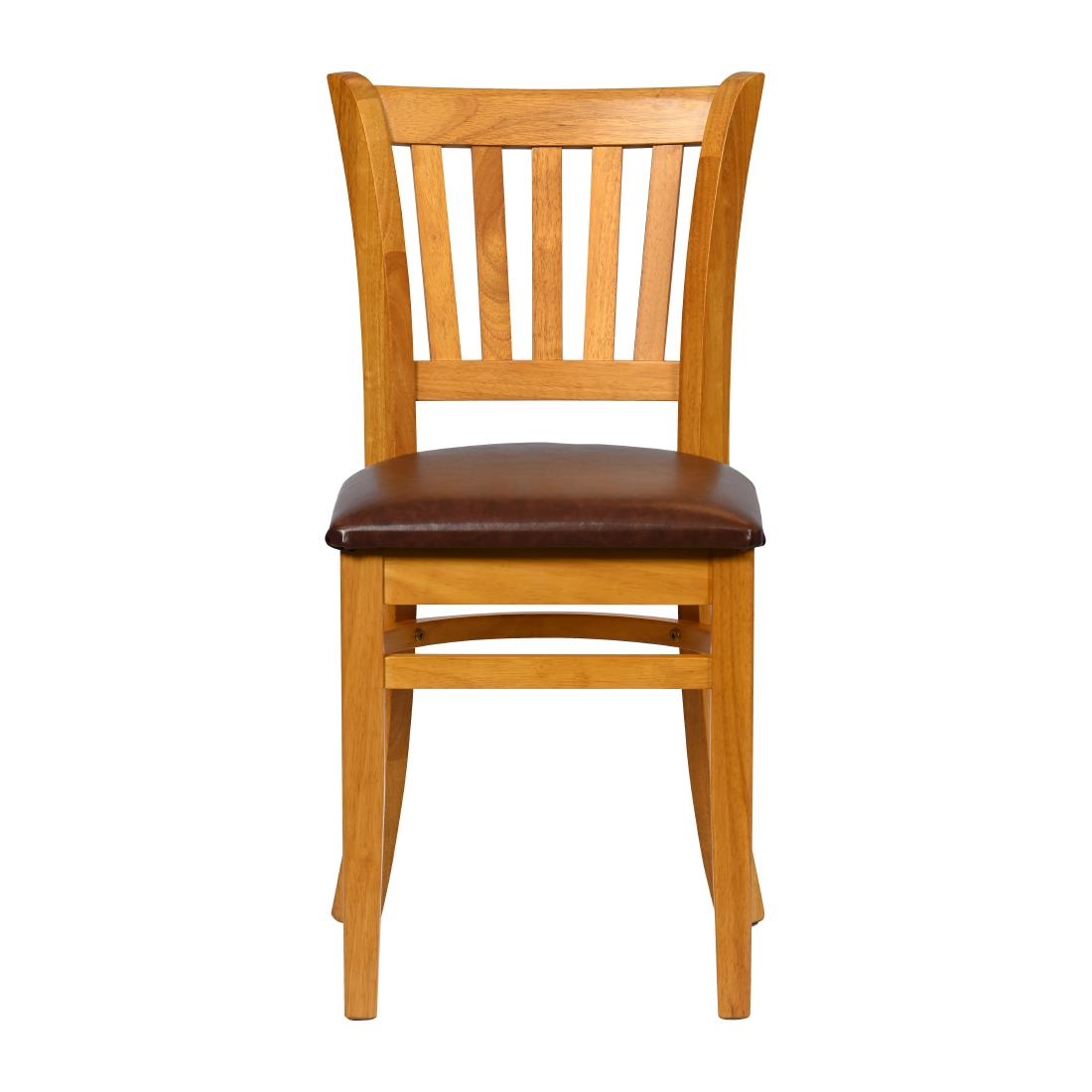 The robust Manhattan chairs are finished in the same soft oak stain and tuck neatly under the table when not in use. For added comfort, each chair is fitted with a padded seat, upholstered in bison espresso easy-clean vinyl, ensuring both style and practicality.