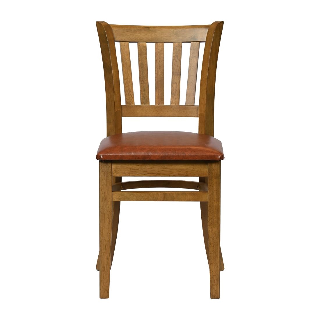 The robust Manhattan chairs are finished in the same weathered oak stain and tuck neatly under the table when not in use. For added comfort, each chair is fitted with a padded seat, upholstered in bison tan easy-clean vinyl, ensuring both style and practicality.