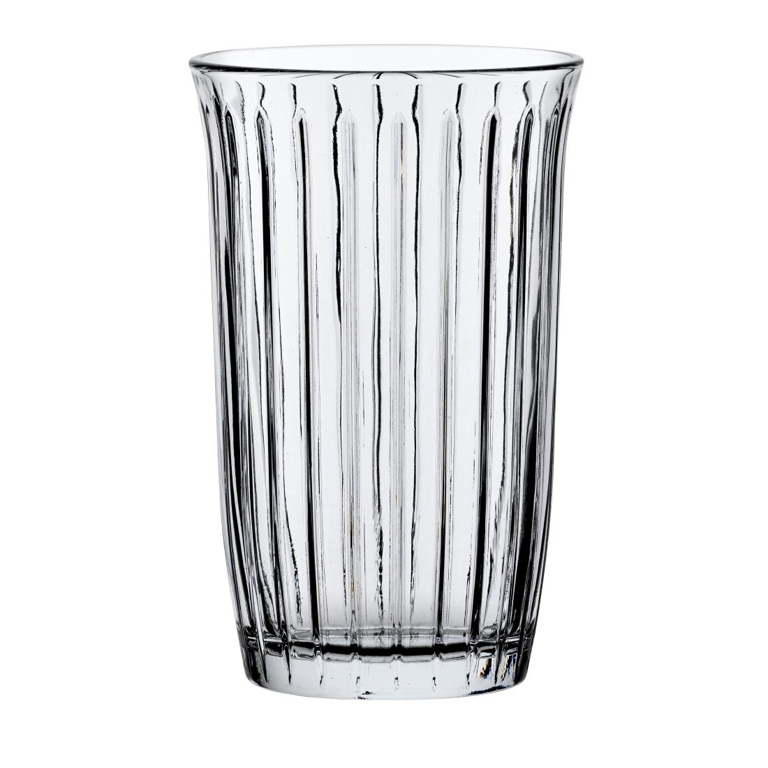 Introduce stylish glassware to your collection with the 295ml hiball glasses from Utopia’s Joy collection. Made from premium machine-made soda lime glass, these Joy glasses benefit from an elegantly curved profile. The glasses feature deep vertical lines that add a contemporary look to your venue.