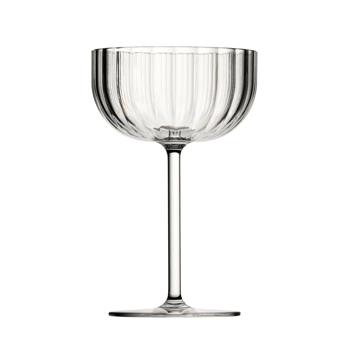 Crisp vertical optics and outstanding clarity make these Paradise coupe glasses stand out. Made from virtually unbreakable polycarbonate, the glasses have all the style of crystal glass but none of the fragility. This makes them the ideal choice for bars and restaurants where safety and durability are paramount. These Paradise coupe glasses are also glasswasher safe, allowing for quick and easy clean up after service.