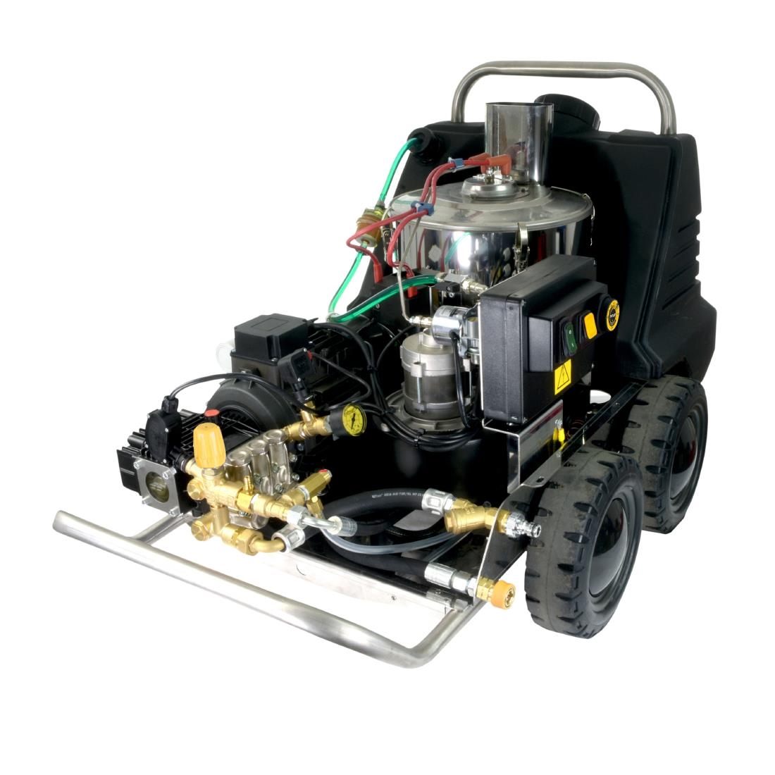 Designed for contract cleaners and facilities management professionals, the unit excels in demanding environments including construction sites, agriculture, industrial facilities, and public service applications. The combination of hot water cleaning, adjustable temperature controls, and durable construction makes it an efficient solution for tackling heavy-duty cleaning tasks across multiple industries.