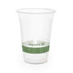 Bring sustainability to your drinks service with this pack of 1000 x 16oz Vegware compostable cold cups. As the cups are made entirely from plant-based PLA, they can be commercially composted within 12 weeks after use. This will help you and your customers to divert waste away from harmful landfill sites and into more sustainable disposal streams. This renewable, plant-based material means the cups are also far kinder to the planet’s finite resources. So even if you can’t compost them, switching to these cold cups will still help to reduce your impact on the environment.Not just Earth-friendly, the PLA material offers superb clarity too. This will ensure all the vibrant colours of your slushies, smoothies and frozen desserts stand out – wonderfully enhancing your drinks-to-go presentation.Try pairing these 16oz cold cups with the matching Vegware domed lids (GH016 – sold separately) for sustainable slushie serving, or the flat lids (GK106 – sold separately) for eco soft drink presentation. The cups will also fit any other lids in Vegware’s 96-Series range.