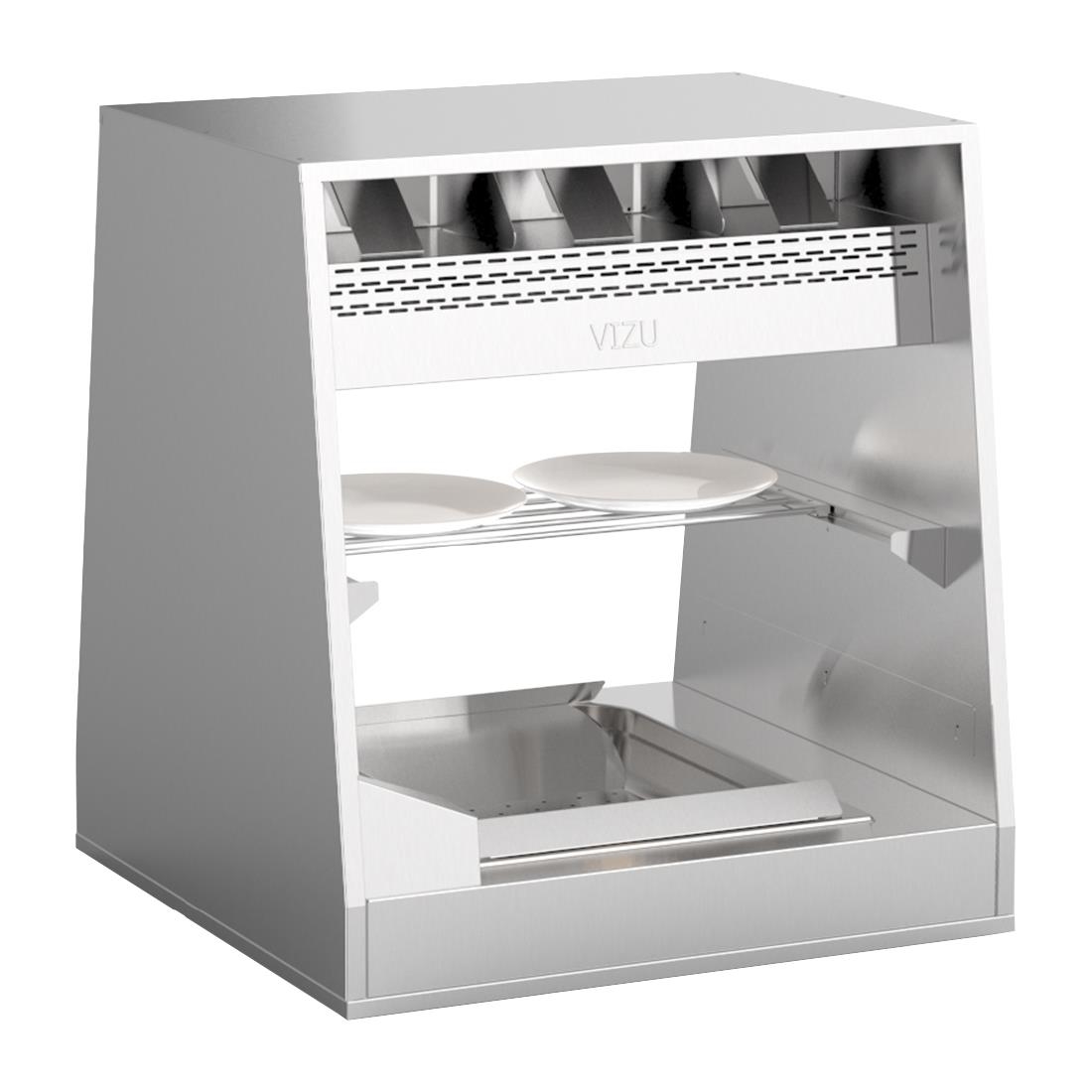 The Vizu Server VI003S is a high quality pass through unit which doubles as a chip scuttle / bagging area, as well as a temporary warming area for plated meals.