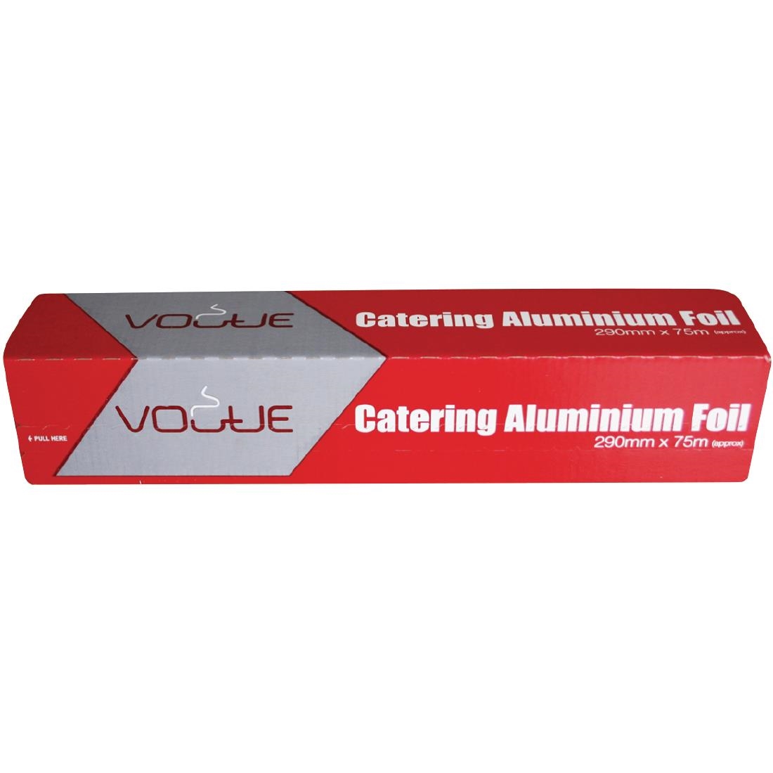 Versatile, practical and budget-friendly, this 290(W) x 75(L)m roll of Vogue aluminium foil is the perfect choice for both commercial and domestic kitchens. The generous 75m length means each roll will last you longer, stretching your money that little bit further while also ensuring you’re never running low on foil when you need it most.Impervious to moisture, gas and light, tin foil is one of the best barrier films available. It’s great for creating roasting pouches for meats – locking-in heat and flavour during and after cooking to give you even better tasting dishes! The foil can be used to cover ingredients in fridges too, helping to preserve freshness so you can cut down on the amount of food you waste.The included cardboard dispenser’s serrated edge also makes cutting the foil to size as easy as possible, ensuring hassle and waste-free dispensing every time!