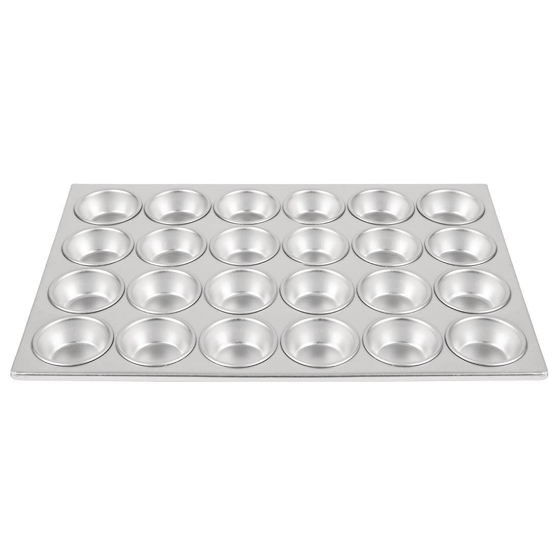 Effortlessly produce perfectly shaped baked products with this premium Vogue 24 cup muffin tray. Boasting a 24 cup capacity, this tray can be used to create vast quantities of flawless tarts, muffins and cupcakes with great speed, making it ideal for any commercial bakeries, restaurants and cafés catering to large numbers. Crafted from robust aluminium, this muffin tray is also incredibly durable, allowing it to endure the rigours of everyday use without breaking or damaging.