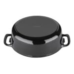 This traditional black oval casserole dish is well suited to use in any kitchen, from the family kitchen to bustling restaurants. A strong, reliable and durable cast iron construction helps it to withstand constant use and makes it easy to clean. It also feature an innovative self-basting design that ensures your food is kept moist whilst it cooks, giving you delicious and succulent results every time. Two large handle make it easy to move, even when wearing oven gloves.