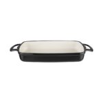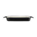 A traditional rectangular cast iron casserole dish with a handle on each side for easy carrying. This dish has excellent heat retaining properties and provides even heat distribution. This attractive black dish is ideal for oven to table use, especially for serving up large amounts of casserole, lasagne and pies.