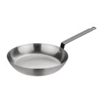 The Vogue carbon steel frying pan is a high quality 12 inch pan, featuring a robust and hardwearing handle with a practical loop at the end, perfect for hanging from hooks to save space. This carbon steel pan is great for busy kitchens with its superior heat retention and even heat distribution – it allows you to quickly and efficiently cook a variety of ingredients for all occasions. Seasoning the pan before use will ensure best cooking results. A superb quality professional frying pan.