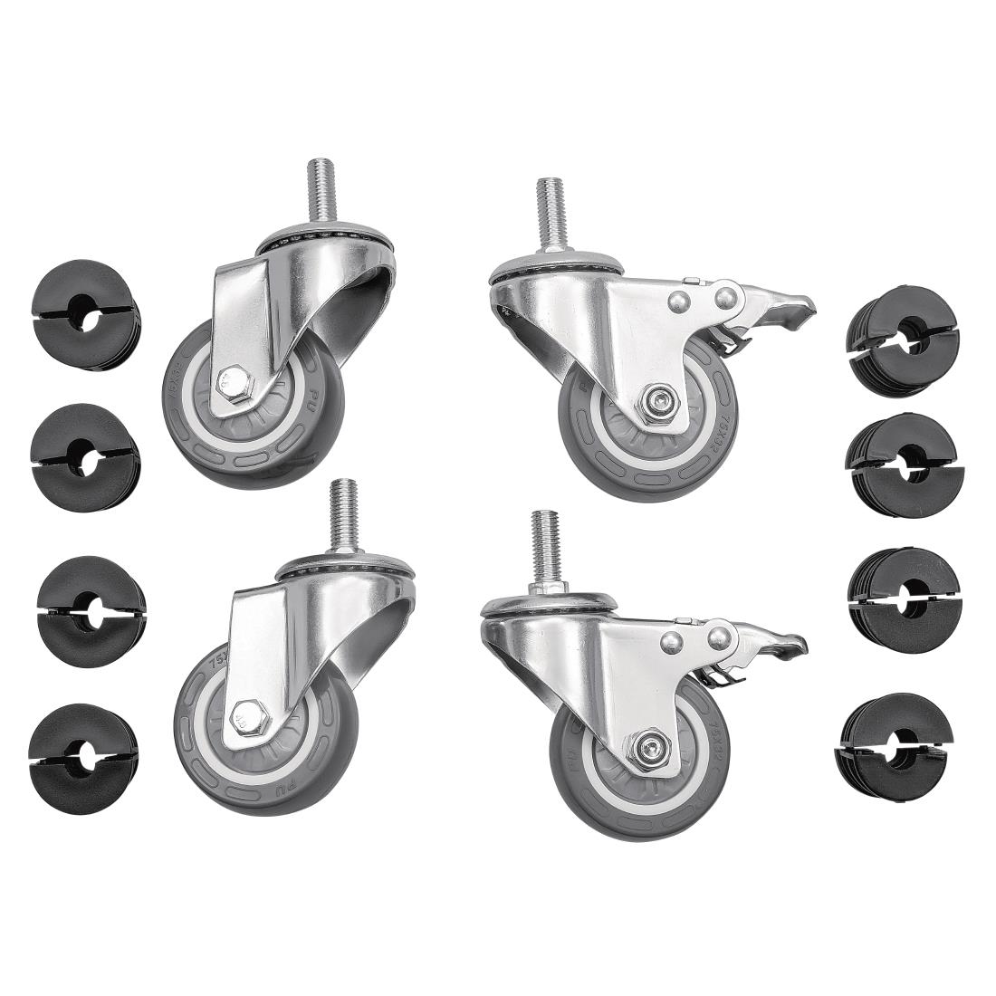 Designed for use with the Vogue stainless steel tables, this pack includes 2 braked and 2 unbraked castors for enabling mobile units or to be kept as spares. These sturdy castors allow free movement of the tables but keep them anchored when brakes are engaged. They also make cleaning kitchen floors much easier, making them ideal for busy food service areas. Please note that the castors will raise the height of the tables by 65mm.